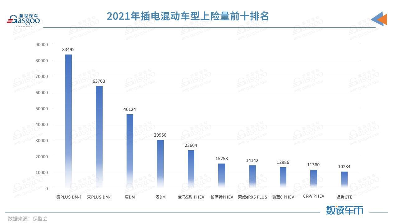 另外,比亚迪全面搭载DM-i超级混动技术的插电混动车型市场份额进一步提升。在全年插电混动车型上险排名中,前四款车型均来自于比亚迪,秦PLUS DM-i、宋PLUS DM-i、唐DM、汉DM四款车型累计上险约为22.3万辆,占插电混动市场约53.1%的份额。据了解,搭载DM-i超级混动技术的车型综合续航里程可突破1200公里,亏电油耗低至每百公里3.8L,有效解决了以往插电混动车型亏电时油耗高的问题。