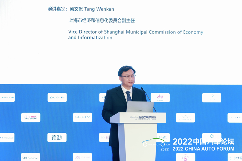 上海市经济信息化委副主任 汤文侃;图片来源:2022中国汽车论坛