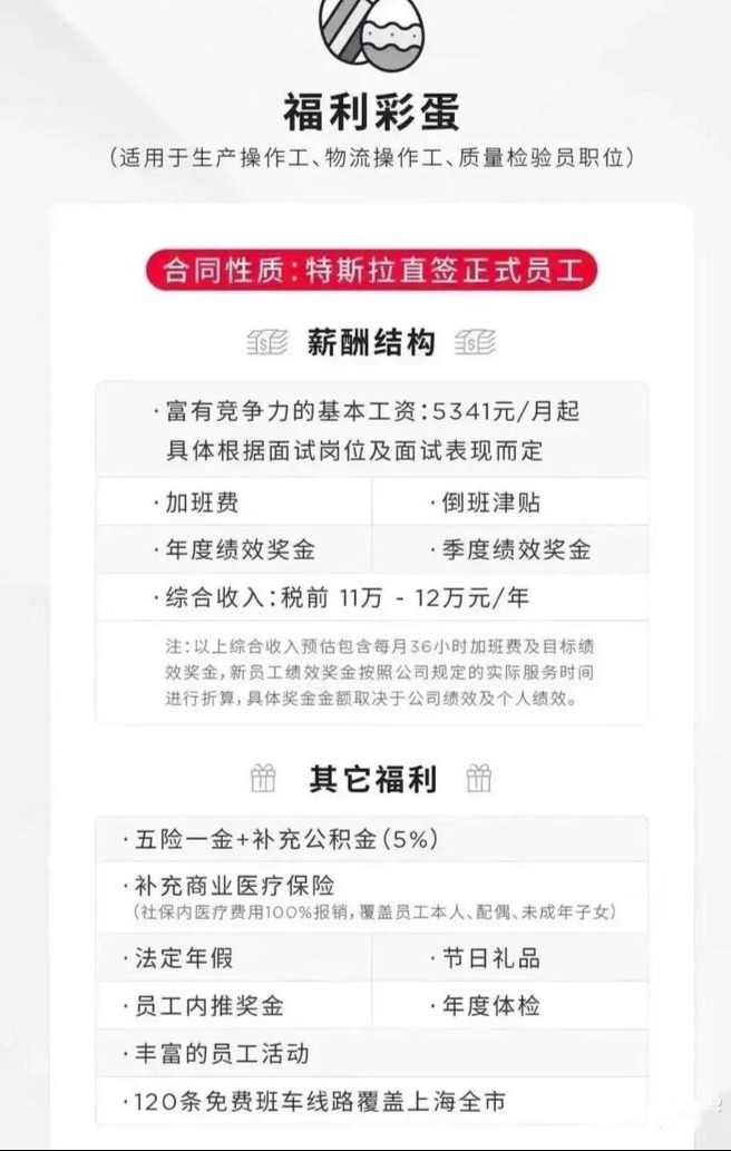 虽然,不同城市生活水平不同,薪资待遇也有明显的差别。但很多人认为,国内汽车企业给普工开出的福利待遇,明显不如特斯拉。