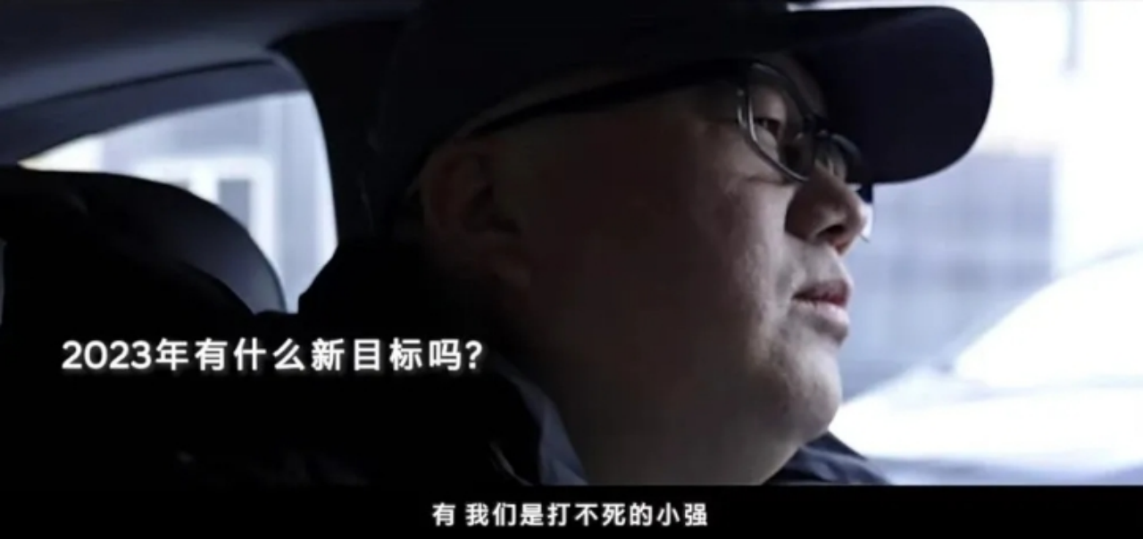 2023年春节前,北京现代策划了一起“我有车,让我送你一程,跟你换一个故事”的活动,把镜头对准了真实的人,采访乘客2022年感触最深的故事及2023年的期待,通过朴实的语言展示普通人的酸甜苦辣。当中一个片段中,受访者被问到“2023年的新目标时”,他回答说“我们是打不死的小强,准备开一家新店”,这从侧面也反映出北京现代的心声。