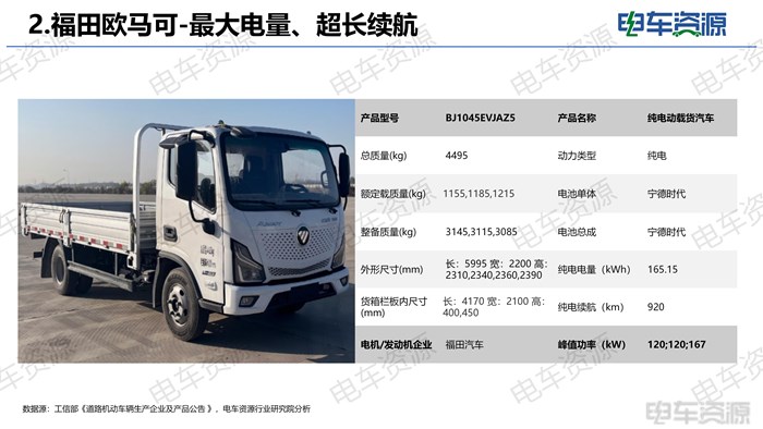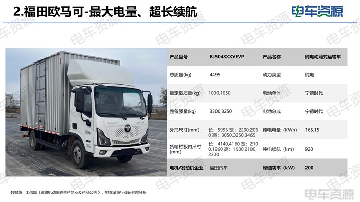 2. 福田欧马可-最大电量、超长续航