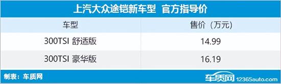 日前,编辑从上汽大众官方获悉,旗下途铠300TSI车型正式上市,新车推出两款车型,售价为14.99-16.19万元。新车最大的特点是换装了全新的1.5T EVO Ⅱ发动机,提升动力的同时带来更好的燃油经济性表现。